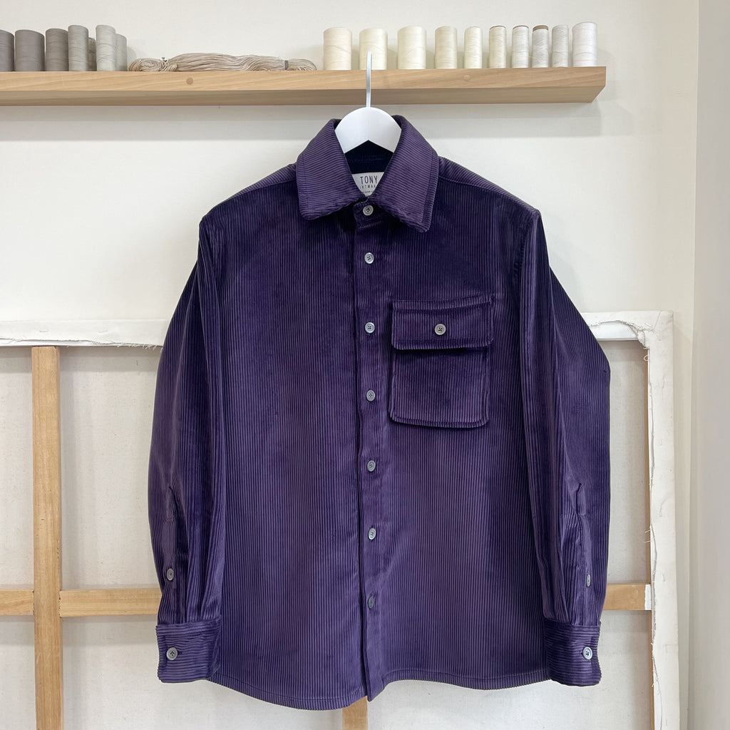 This overshirt is made from a heavy weight, 8 wale corduroy from England. The cord has a velvety sheen with a soft hand feel and a very structured drape (16.5 Oz!) that will slowly break down and soften over time. Design features include a French workwear inspired collar, double button cuffs and a locker loop. The single square pocket is a 'Barchetta' style, which means that the hand-sewn top hem gently slopes like the bow of a little boat. This shape is carried over into the flap, set on an incline. The pocket is sewn on floating - the inlaid topstitch gives it a three dimensional look. The sleeves are cut wide to accommodate layering, with an adjustable double button cuff (tighter for a more shirt-like fit, looser for a more jacket-like fit). The back features a locker loop for hanging by the door. Finished with matte smoked trocas shell buttons, each hand-sewn with a crow foot stitch.
